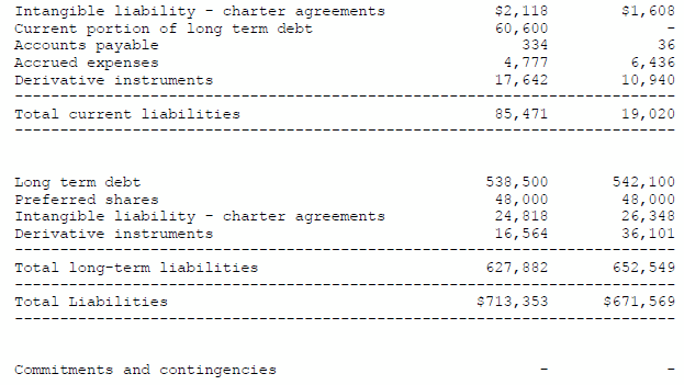 - Amended the credit facility in August 2009 to suspend loan-to-value tests effectively until second quarter 2011. The amendment also allowed further borrowings to finance the purchase of CMA CGM Berlioz, cancelled all undrawn commitments and requires prepayments based on free cash flow. No common dividends can be declared or paid until the later of November 30, 2010 or when loan-to-value falls to 75% or below