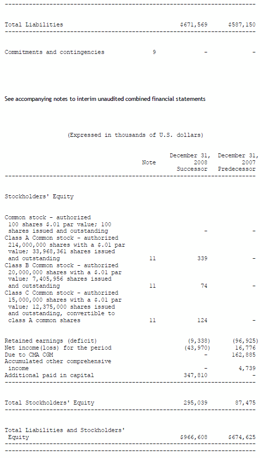The "Adjustment" columns in the tables below include (i) the elimination of the containerized transportation activity performed by the Predecessor up to August 14, 2008, and (ii) the IPO and merger costs expensed by the Predecessor.