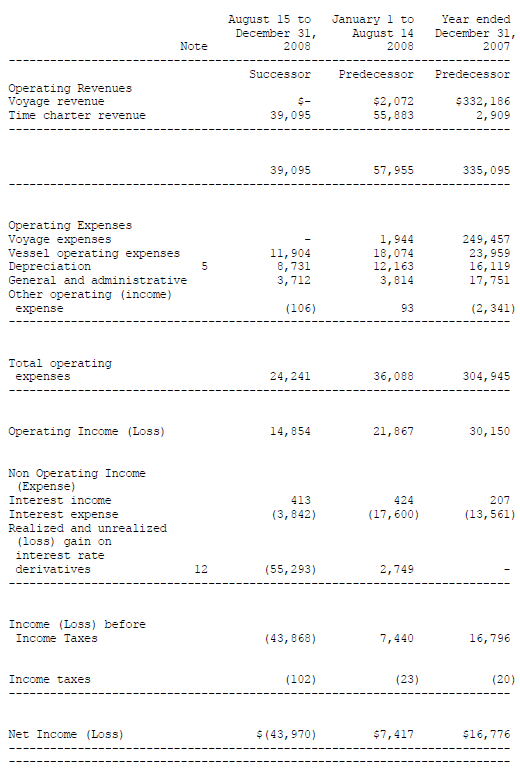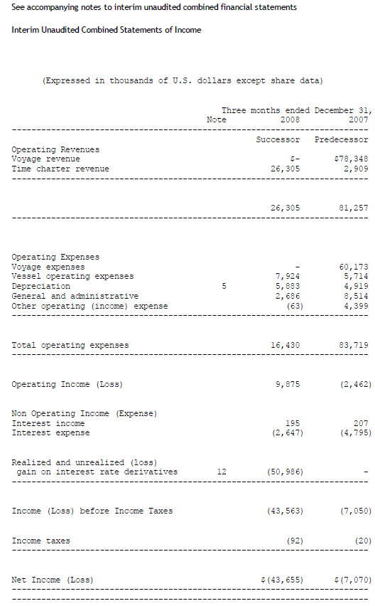 (1) Comparative data for the three and nine months ended September 30, 2008 relates to the Company's time charter business only and therefore excludes the results from containerized transportation undertaken by the predecessor group